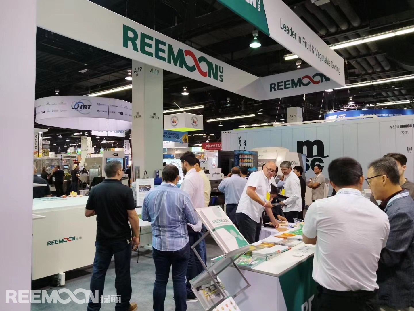 Reemoon brought the latest AI sorting technology and Apple intelligent sorting machine to the Anaheim Convention Centre and demonstrated the sorting process on-site. The machine sorted apples for size, color, and black heart accurately and efficiently, attracting a large number of attendees.