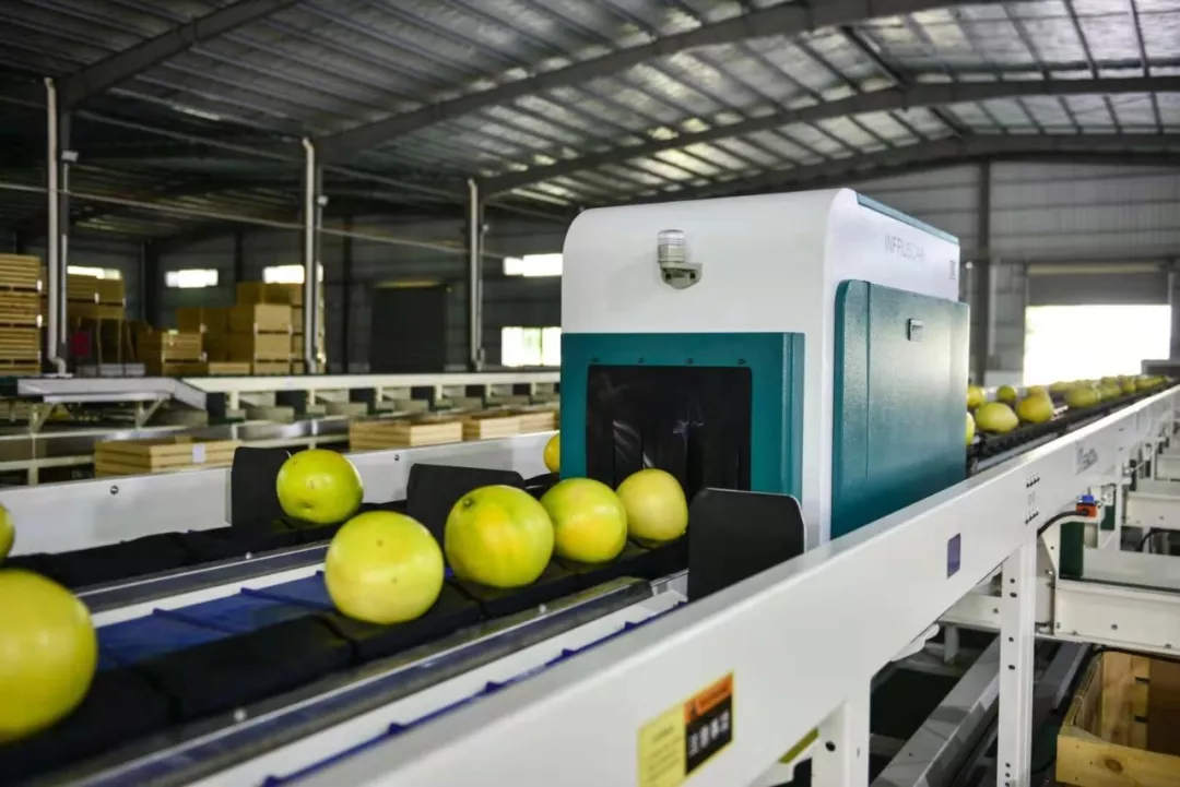 广东梅州柚产业有着良好的基础,确保柚子的品质,是打造品牌的的基础。为了推进梅州柚产业的进一步发展,打造梅州柚品牌,除了在源头种植端种好梅州柚,还需要在采后严选上做好品质把控,为此,梅州引入了绿萌柚类分选线,大力建设无损检测系统。