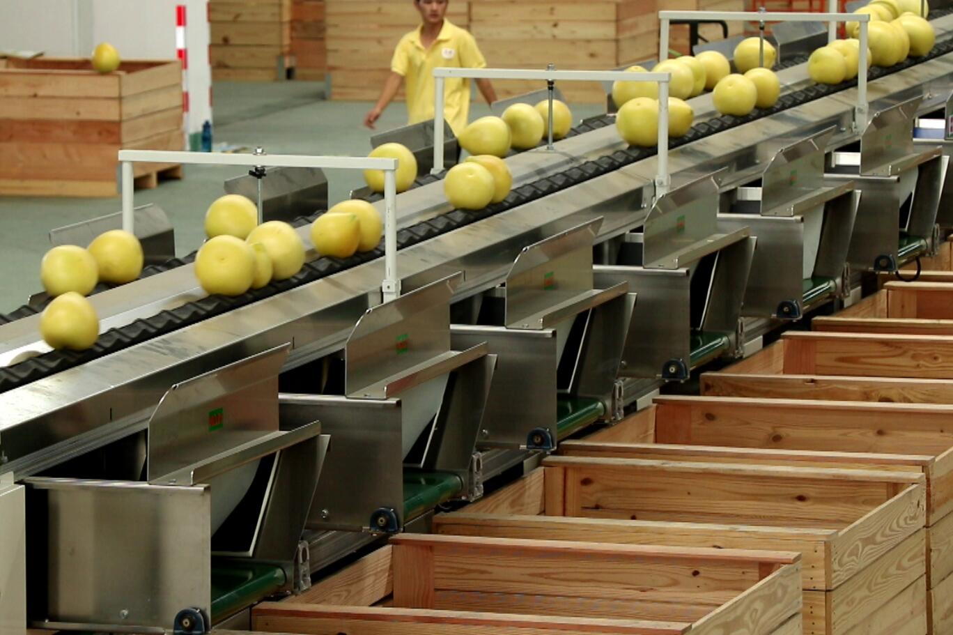 绿萌柚类分选线对柚子做品质把控,帮助企业差异化收购和销售。绿萌柚类分选科技帮助梅州市引导分级定价销售,建立产品可追溯体系,应用大数据手段,推动梅州柚果产业形成科学种果、保质保量、分众销售,保障果农良性增收。好柚好价,倒逼柚农不断提升柚果品质,促进产业高质量发展。